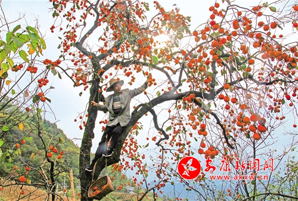 白河縣城關(guān)鎮(zhèn)安福村金秋柿紅。趙久剛 攝