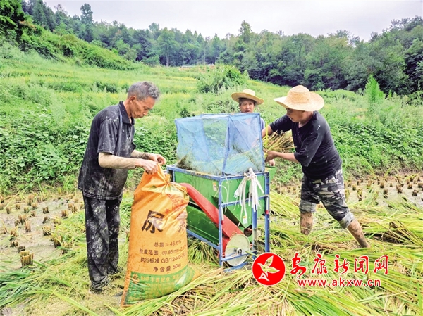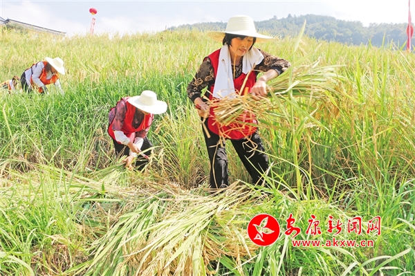 9月3日,平利縣長安鎮(zhèn)中原村“旱改水”項目區(qū)的130畝水稻相繼成熟并進入收割期。吳永杰 攝
