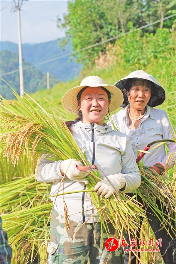 嵐皋縣南宮山鎮(zhèn)桂花村水稻喜迎豐收,今年預計稻谷產(chǎn)量達到45萬多公斤,帶動當?shù)卮迕駪艟暝鍪?000元。柴可庭 攝