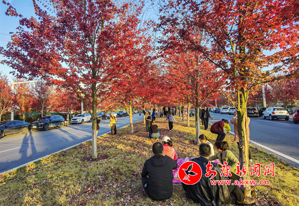 安康富強(qiáng)飛機(jī)場(chǎng)大道的紅葉進(jìn)入紅葉最佳觀賞期,每天有數(shù)百人在這里觀賞,拍照和打卡,留下紅葉的美好瞬間。(圖文:陳德模)Q6Y安康新聞網(wǎng)