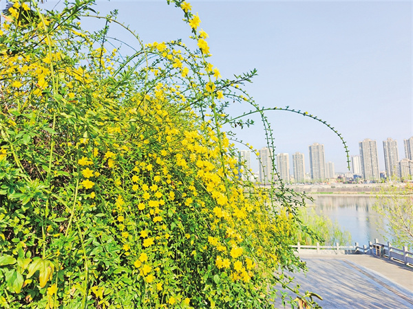 安康中心城區(qū)江邊步道旁的迎春綻放送香來(lái)