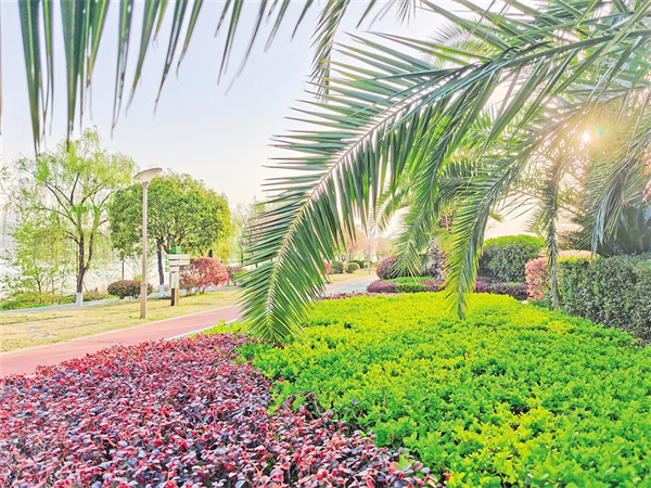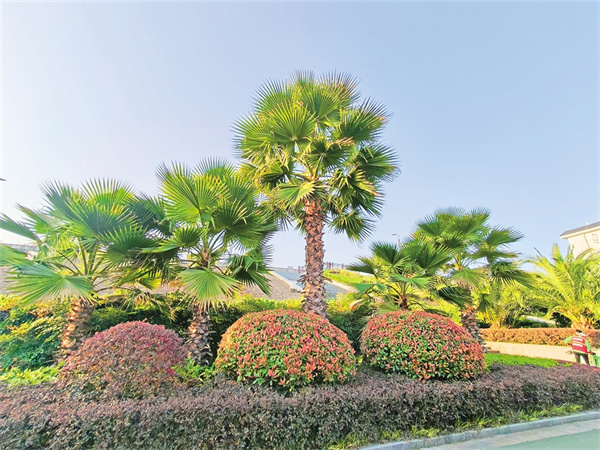 安康一江兩岸的棕櫚春景圖