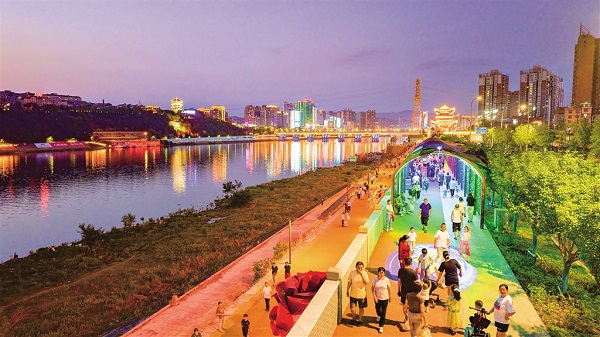 端午假期,我市中心城區(qū)漢江畔西壩防洪堤熱鬧非凡。據(jù)了解,西壩防洪堤為市政配套設(shè)施及綠化工程,東起金川門,西至三橋,全長1.2公里。堤頂人行步道用塑膠與混凝土拼接,實用舒適;防浪墻采用真石漆裝飾,美觀耐久;兩座長49米的百花長廊,配以水淋噴霧;同時建有時光隧道,白天可觀花,夜間可賞景。曾經(jīng)單一功能的防洪工程,如今成為安康“生態(tài)+文旅”的又一新地標(biāo)。 錢運立 黨宏 攝Hrg安康新聞網(wǎng)