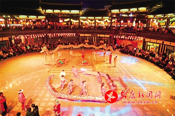 春節(jié)期間,嵐皋縣舉行了燈光秀、舞獅、采蓮船等系列民俗文化活動(dòng)。陳陽 攝EVM安康新聞網(wǎng)
