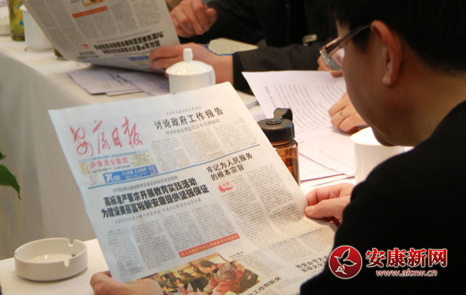 政協(xié)委員正在認真地閱讀《安康日報》關(guān)于兩會的報道。