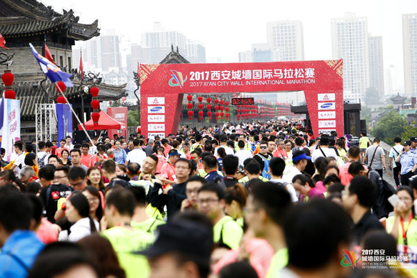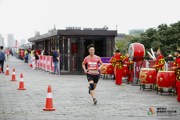 人民網(wǎng)北京9月11日電 2017西安城墻國際馬拉松賽于昨日上午8:00鳴槍開賽。作為世界唯一將賽道設(shè)置在完整城墻之上的馬拉松賽事,城墻馬自舉辦以來就備受廣大跑友的關(guān)注。今年亦是如此,來自美國、澳大利亞、法國、日本等13個(gè)國家和地區(qū)的3000名運(yùn)動(dòng)員齊聚古城墻,共同見證了這場歷史文化與體育競技相融合的跑步盛典。