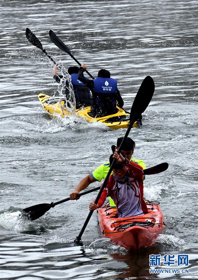 ↑11月16日,皮劃艇接力賽選手在比賽中。 當(dāng)日,2018年福建將樂皮劃艇趣味賽在將樂縣金溪河開賽。本次比賽設(shè)皮劃艇拔河、皮劃艇接力、槳板競渡3個項目,吸引了福建、吉林等國內(nèi)120名選手參與。 新華社記者彭張青攝