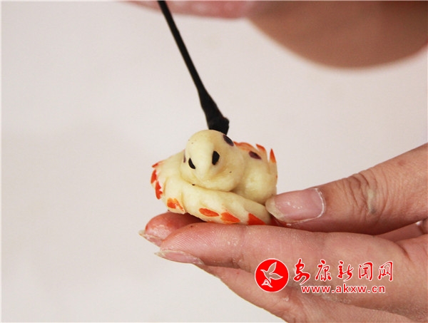 據(jù)了解,在安康本地常見(jiàn)的面塑有四種:第一種是生日滿(mǎn)月面塑,塑造成象征吉祥的植物、動(dòng)物及人物形象,如雙魚(yú)、項(xiàng)圈等寓意為健康、平安、一帆風(fēng)順等。第二種是祝壽面塑,多為壽糕、壽桃造型。以祝健康長(zhǎng)壽之意。第三種是喪葬祭祀面塑,用椌、塑、串各種手法蒸制成動(dòng)、植物造型,如:龍、鳳、花鳥(niǎo)魚(yú)蟲(chóng)等。施以紅黃綠重彩點(diǎn)染,稱(chēng)為“供獻(xiàn)”,專(zhuān)用于亡靈的祭祀。第四種就是日常食用面塑,如油旋、麻花、點(diǎn)心、面角等。