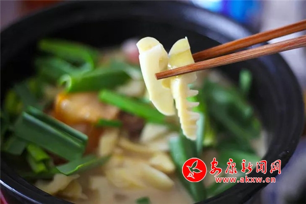 每年3月份一場(chǎng)春雨過后,長(zhǎng)在石泉土地上的春筍集體“鉆出”泥土,為吃貨們奉上一頓“鮮味盛宴”,春日的竹筍,最是鮮嫩可口,如果想要嘗鮮,也要抓住時(shí)機(jī),錯(cuò)過就要等明年!充滿詩(shī)情畫意的石泉土地,就是鮮味的源頭。土壤、濕度都特別適宜,使得這里的竹筍皮薄肉厚,鮮美甘甜。剛挖出來的春筍把殼剝掉后露出潔白如玉的筍尖,新鮮得能掐出水來。豐滿肥碩的筍身,入口無渣,清香甘甜,散發(fā)著竹林間的清香。它的營(yíng)養(yǎng)價(jià)值高,含有粗蛋白、可溶性糖類、纖維素,鈣、鐵等礦質(zhì)鹽類,以及維生素A、B、C等,能有效調(diào)節(jié)人體新陳代謝。石泉春筍甜嫩,不論怎么做都好吃,春筍炒肉、腌菜炒筍……不吃三碗飯不下桌。