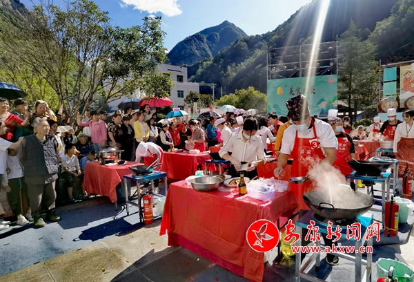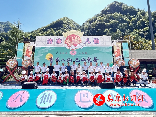化龍山下靈秀八仙景色美,女媧故里產(chǎn)業(yè)興旺飄茶香。8月31日上午,“清涼八仙 巴山食薈”美食季活動(dòng)啟動(dòng)儀式暨美食大賽活動(dòng)在平利縣八仙鎮(zhèn)舉行;顒(dòng)現(xiàn)場(chǎng),來自八仙鎮(zhèn)各村組的19組選手,紛紛拿出自己的看家絕活,在現(xiàn)場(chǎng)設(shè)置的灶臺(tái)前,煎、炸、煮、蒸、炒,各式烹飪手法齊上陣,金銀蛋卷、洋芋粑粑炒臘肉、天蒜土豆絲、天麻烏雞湯一道道美味佳肴精彩亮相。(記者 張喬)