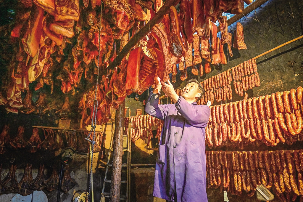 歲末年首,石泉縣城關(guān)鎮(zhèn)珍珠河村發(fā)動能人大戶,用傳統(tǒng)工藝烘制臘肉、香腸等特色“年貨”5萬余斤,多渠道擴(kuò)大農(nóng)戶增收渠道,線上線下做優(yōu)做強(qiáng)本土“臘味”經(jīng)濟(jì)。董……