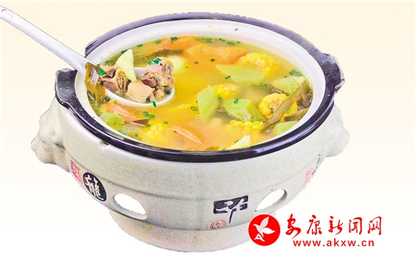 漢陰縣城關(guān)鑫遙農(nóng)莊——白火石汆湯陜西省非物質(zhì)文化遺產(chǎn)之一,中國(guó)最古老的烹飪菜肴中的“活化石”。將白石脂燒紅后汆入湯中,用石頭的熱量將食材激熟……