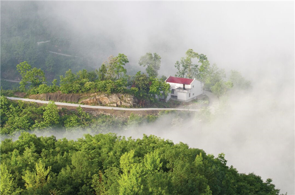 在水中,一條油潤(rùn)潤(rùn)的小路,融匯了大地的物語(yǔ),春雨的澆注,還有輕輕觸碰就會(huì)變幻的神秘。道路的兩邊,是造型夸張要滴出翠來(lái)的植物,阻擋了行人的腳步,牽絆了路人的衣服,會(huì)給那些衣服沾染上艷麗的花粉,在深夜里都會(huì)散發(fā)出一股醉人的清氣,仿佛有什么該想而未想,心里蘊(yùn)滿了不能為人道皎潔的白月光。沿著那條路,就是在水中宛若樓臺(tái)亭閣一般的房屋,黑瓦房、白墻壁,杏花、桃花、茉莉花爭(zhēng)相簇?fù)恚孔颖闳缰蒙砥渲械膵雰毫。還有小奶狗在屋前悠閑地打盹,太陽(yáng)直射下來(lái),貓也走來(lái)湊湊熱鬧,貓的眼睛碧藍(lán)澄澈,仿佛天使之瞳,總是帶著先知或者驚異審視的表情……而與此相對(duì)的,就是炊煙了,唯有炊煙將我們拉回世俗庸常之中,飯菜的香氣,去年果木熏的臘肉,農(nóng)家自己釀的一碗包谷燒,啊,真想喝點(diǎn)小酒,酒的美妙不在于入口的辛辣,而在于微醺之時(shí),那種難以控制的快樂(lè)!古來(lái)圣賢皆寂寞,唯有飲者留其名,明天的事,明天再說(shuō)吧!