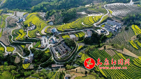 三三兩兩的房屋,就掩映在層疊的菜花梯田間,潔白的墻面,黛青的屋瓦,金燦的菜花,有種遺世獨(dú)立的靜美,塵世的喧囂一下子就遠(yuǎn)了。尋一條鄉(xiāng)野小徑,步入茫;ㄌ镩g,不時(shí)有蜂蝶流連,孩童嬉鬧,農(nóng)人牽著牛自不遠(yuǎn)的長(zhǎng)橋上悠悠走過(guò),處處都流淌著鄉(xiāng)村田園的盎然春意。