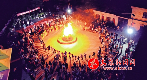 “五一”勞動節(jié)當日,在嵐皋縣孟石嶺鎮(zhèn),一場篝火晚會火熱舉行。全鎮(zhèn)干部群眾及外來游客紛紛前來享受頗具地方特色的娛樂活動。楊倩 楊文君 攝