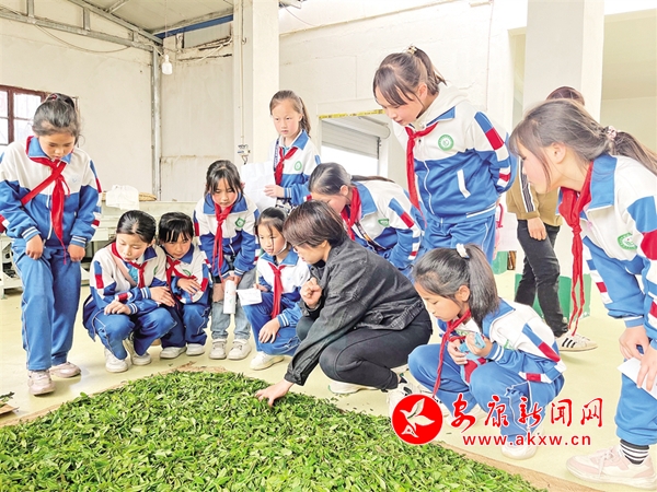 “五一”期間,石泉縣后柳鎮(zhèn)中心小學開展主題為“尋茶之香韻,研茶之文化”研學活動,讓學生體驗茶文化的魅力。 李明明 陸俊箐 攝