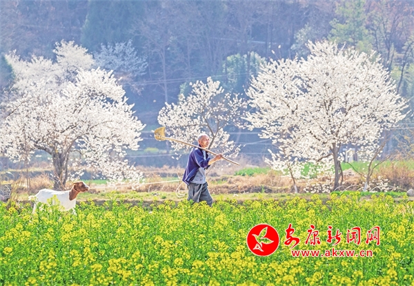 茶園里,新綠如波,嫩芽吐露著沁人心脾的清香;êig,桃花爭艷、櫻花嬌羞、菜花耀眼,像是天上灑落的霞光,點綴著大地。湖光山色交相輝映,碧波蕩漾,倒映著藍(lán)天白云,構(gòu)成一幅和諧的自然景致。