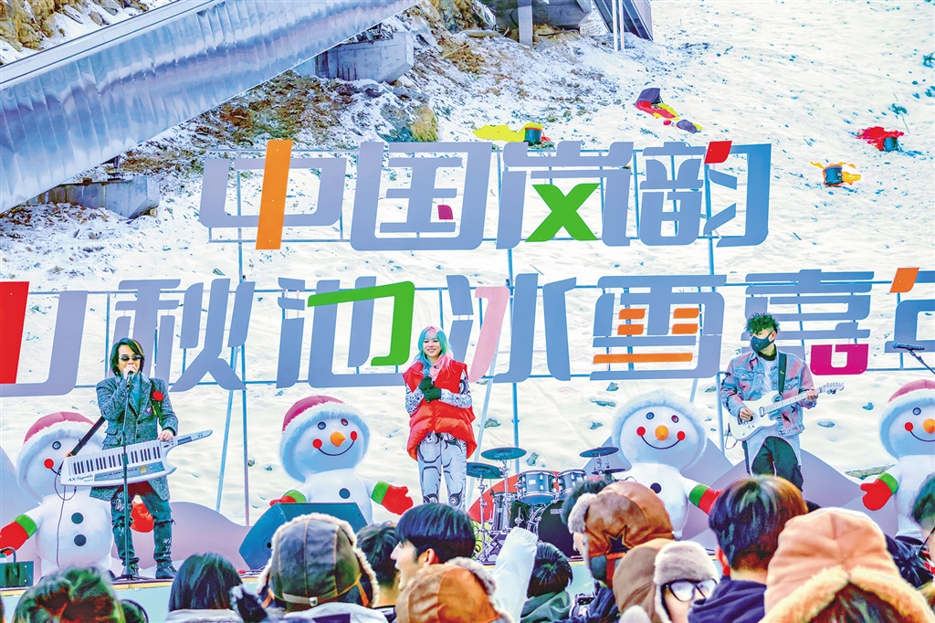 本次演歌會還精心策劃了雪中尋寶、雪地摔跤、雪地拔河、激情傳雪等豐富多彩的娛樂活動,實景市集隧道、玩雪區(qū)、冰雕區(qū)等地也熱鬧非凡,游客們紛紛打卡拍照,美食區(qū)的庖湯宴、特色小吃等各類美食更是讓游客駐足品鑒。雪地娛樂、美食品嘗與音樂大合唱的碰撞,讓整個巴山秋池的現(xiàn)場激情澎湃、熱火朝天,為線上線下的游客帶來新鮮刺激的感官體驗。