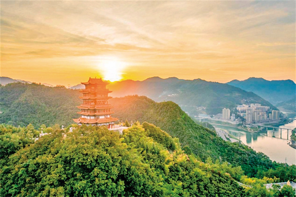 晨起追云,來到郭家梁玻璃觀景臺(tái)上遠(yuǎn)眺,漢江如游龍蜿蜒向東,紫陽(yáng)山城在云霧中若隱若現(xiàn),恍若仙人執(zhí)筆的寫意水墨。若遇上雨后初霽的清晨,山嵐與晨曦相互交織,更顯空靈縹緲。