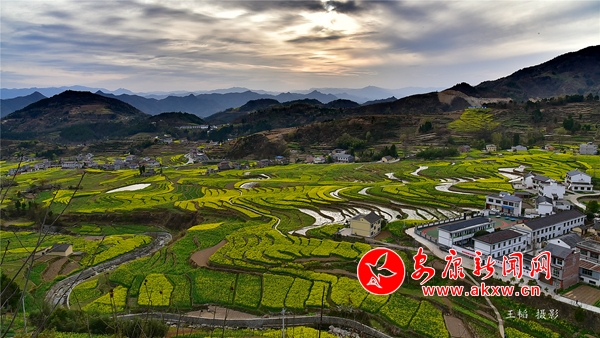 依著山勢,那些黃綠色,繪出最自然的線條。遠(yuǎn)山如黛,陪著田埂上老農(nóng)和耕牛,默契的一起把身影倒影在水田。點(diǎn)綴在田園民居的炊煙裊裊,如緩緩落下的夕陽,靜謐、悠然,讓人眷戀。