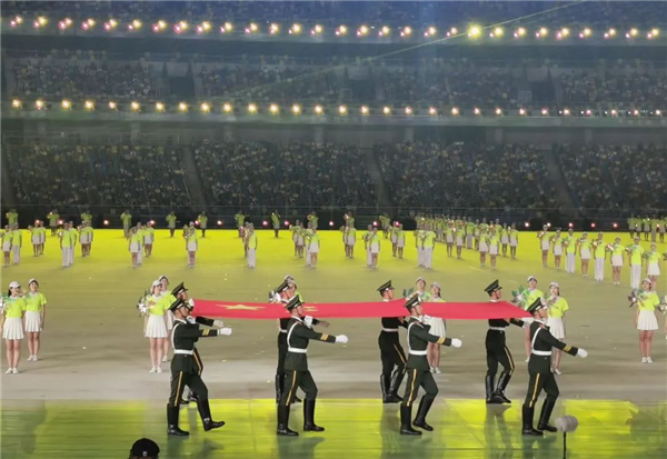 隨后,五星紅旗冉冉升起,6萬(wàn)人齊聲唱國(guó)歌。“起來(lái),不愿做奴隸的人們,把我們的血肉,筑成我們新的長(zhǎng)城……”當(dāng)這首從小根植在我們腦海中的歌曲在奧體中心上空飄揚(yáng),場(chǎng)面十分壯觀(guān),這一刻我不禁熱淚盈眶!第一次參加如此壯觀(guān)的升旗儀式,第一次近距離參加如此龐大的體育盛會(huì),內(nèi)心頃刻間升騰起無(wú)比強(qiáng)大的民族自豪感,真切感受到祖國(guó)的繁榮強(qiáng)大、團(tuán)結(jié)富強(qiáng),越發(fā)覺(jué)得我們能夠生在長(zhǎng)在偉大的中國(guó),是多么自豪、多么驕傲!能夠生活在這個(gè)繁榮昌盛的時(shí)代,是多么幸運(yùn)、多么幸福!