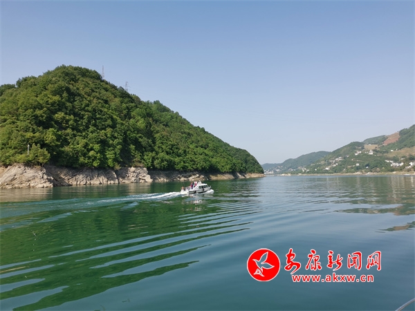 一路泛舟游覽,湖心遠眺幾座翠綠的高山,那些山高低起伏,錯落有序,像一條蜿蜓曲折的長龍。