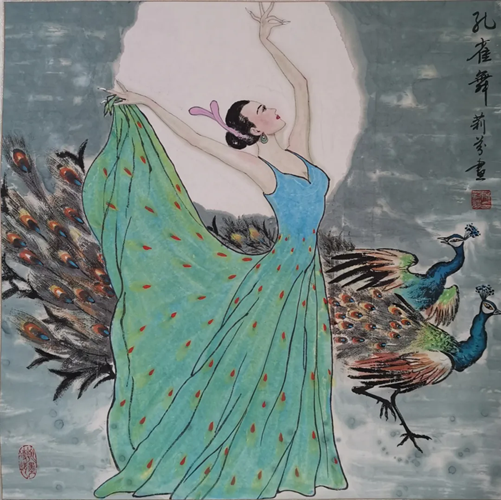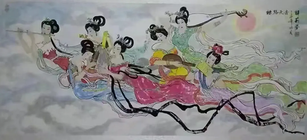 解大姐是陜北人,性格開(kāi)朗、直率,說(shuō)話中間或帶出一些濃重的陜北口音。雖說(shuō)她主業(yè)從于政界,但她微笑的背后卻潛藏著不可掩飾的藝術(shù)天賦,揮發(fā)著令人奪目的藝術(shù)才情。繁雜的政務(wù)工作之余,她創(chuàng)作不輟,堅(jiān)持不懈,居然在多個(gè)藝術(shù)門(mén)類(lèi)收獲頗豐,好評(píng)連連。寫(xiě)小說(shuō),她寫(xiě)出幾十萬(wàn)字的長(zhǎng)篇出版發(fā)行;寫(xiě)劇本,竟拍成了電影予以公映;學(xué)國(guó)畫(huà),亦讓藝術(shù)界的大咖贊口不絕。我雖不才,空有浮名,但深耕藝界多年,對(duì)于其中的好賴(lài)還能分出一二。我感到,一個(gè)人的人品和藝品基本一致,解大姐的藝術(shù),是扎根于她熟悉的陜北大地的藝術(shù),是生長(zhǎng)在山峁峁上經(jīng)歷風(fēng)霜雨雪的藝術(shù),就像那陜北倔強(qiáng)的疙瘩柳,散發(fā)著對(duì)土地對(duì)生活的親近和熱情,對(duì)人生價(jià)值實(shí)現(xiàn)的不屈和追求。看到她的國(guó)畫(huà)新作,有陜北剪紙等民間藝術(shù)的滋養(yǎng)和影響,真切而樸實(shí)。她的飛天人物系列,泥古而不落窠臼,使我想到疙瘩柳條隨風(fēng)擺動(dòng)的婀娜風(fēng)姿,溫溫潤(rùn)潤(rùn),令人遐思和向往;她的花鳥(niǎo)畫(huà)作,使我想到陜北山野一片蒼茫之間,一朵兩朵盛開(kāi)的山丹丹花,嬌艷得令人不忍觸手;她的山水畫(huà)作,又猶如陜北山原上嫩黃的棗花,洋溢著撲面而來(lái)的質(zhì)樸、清新和率真之氣。