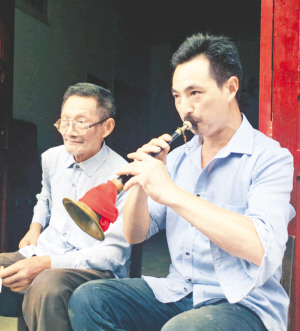 ■ 張朝林一臺(tái)電子琴,兩個(gè)音箱,三四桿嗩吶,五六件鑼鼓家什就湊成了一個(gè)鄉(xiāng)間嗩吶班。鄉(xiāng)間嗩吶班一年四季東奔西跑,活躍在四里八鄉(xiāng),為農(nóng)家的紅白喜事平添幾許的……
