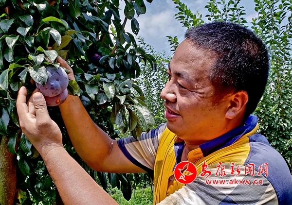 “黑牛”名叫劉春波,是安康市黑牛富硒種植業(yè)有限公司老板。“你種的果子像你的公司名一樣又大又壯!”面對大家詼諧的夸贊,“黑牛”自豪地笑著說,“農(nóng)業(yè)是個良心活兒,咱園區(qū)用的全是農(nóng)家肥,所以長得大,你看咱家的黑布林長的比梨子都大,一個六兩,一個抵仨!”
