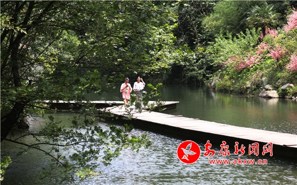依山就勢的亭臺軒榭,與古木巉巖相得益彰,恰似保留了原始風貌的古典園林。林木茂盛,目光從葉脈的縫隙間透過去,便會發(fā)現(xiàn),天地似在一灣水流里合二為一,邂逅的如此絕配。